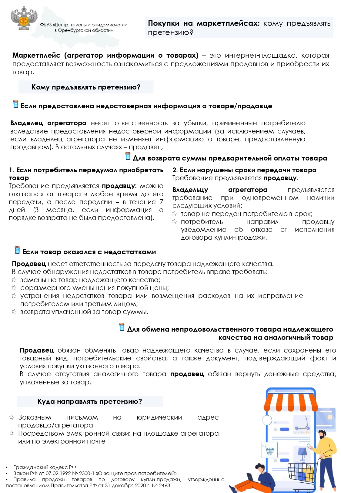 Юго-Западным отделом Управления Роспотребнадзора по Оренбургской области (тел.: 4-59-32) и Консультационным пунктом Сорочинского филиала ФБУЗ «Центр гигиены и эпидемиологии в Оренбургской области» (тел.: 4-60-53) проводятся «Горячие линии» приуроченные Всемирному дню прав потребителей с целью оказания практической помощи по вопросам защиты прав потребителей.
